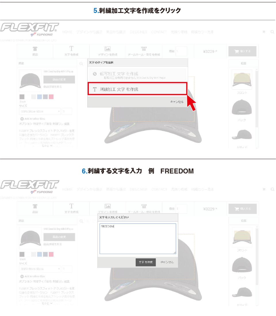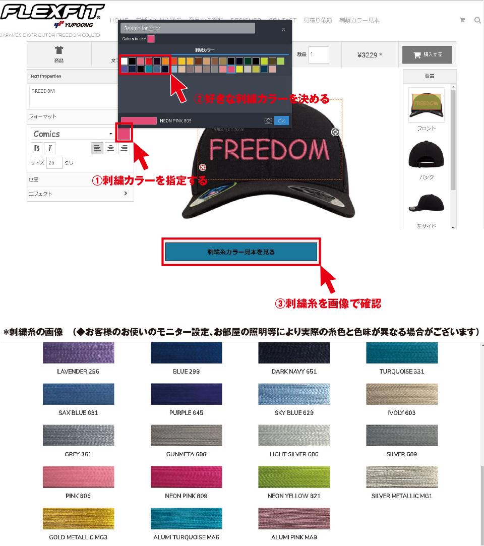 刺繍のデーター自体は平面ですが、実際の帽子は立体になりますので、