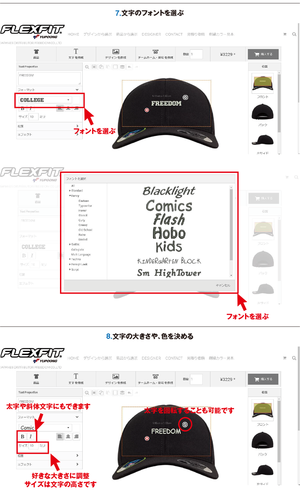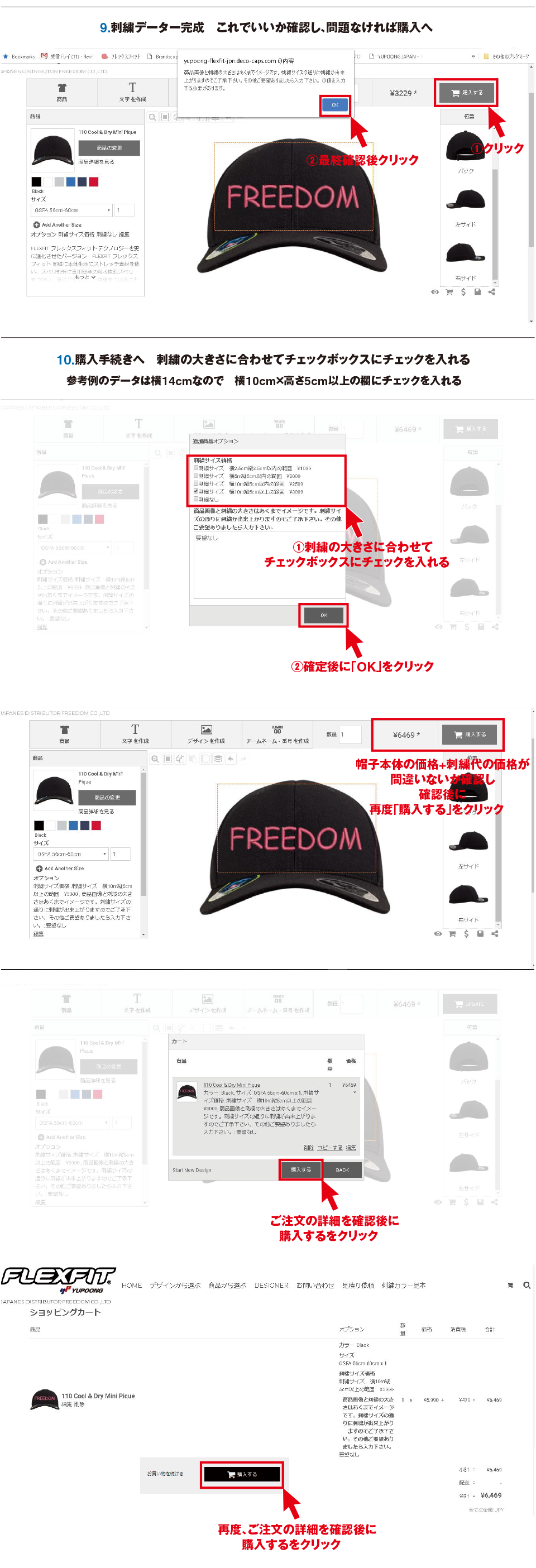 帽子の形、刺繍データーの大きさや、形により機械の構造上問題もあり、