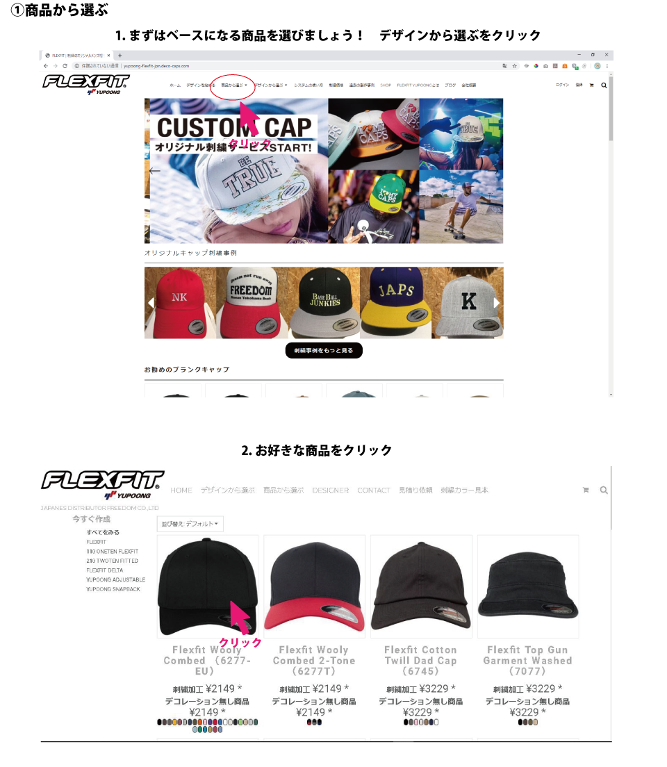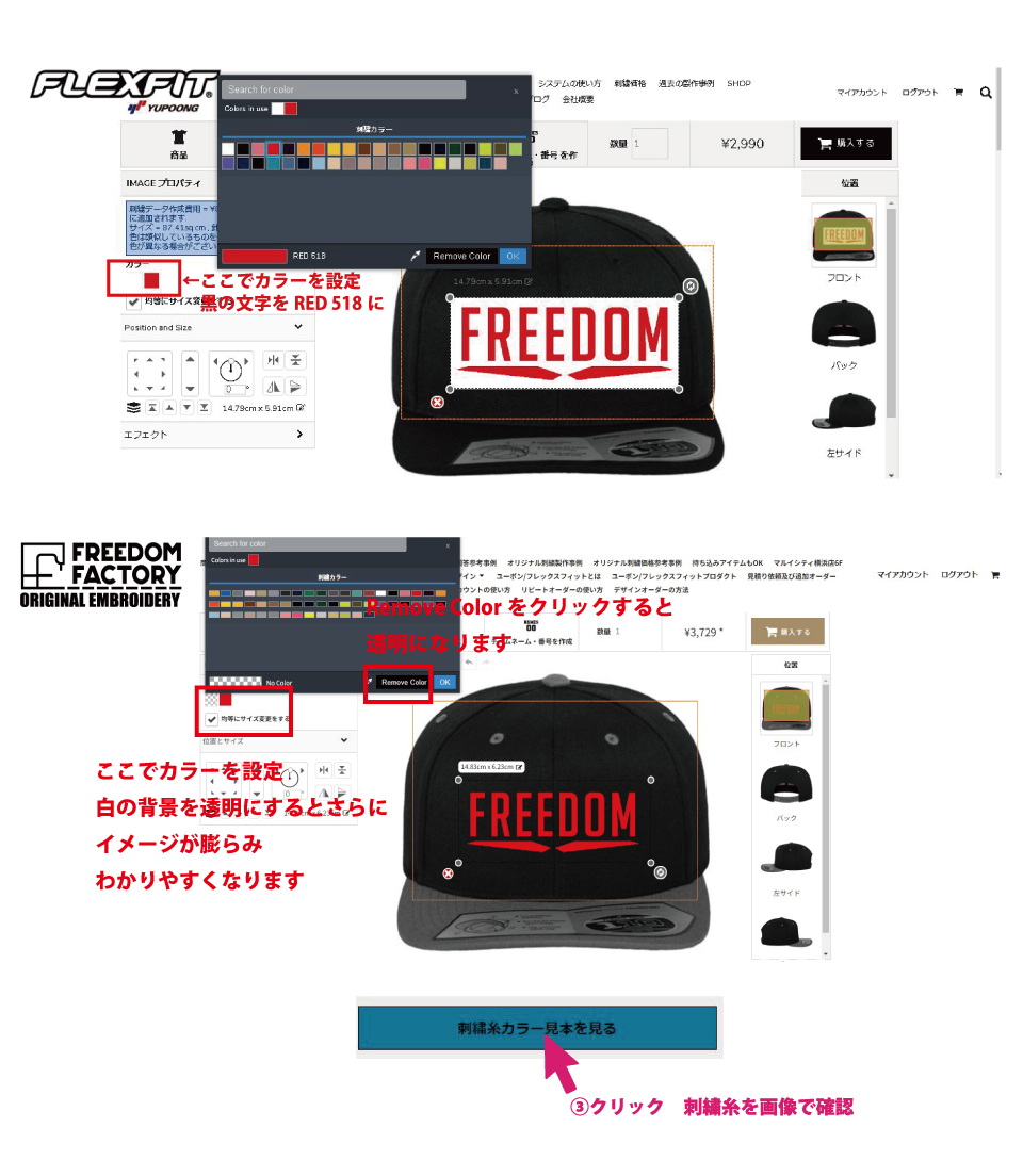 帽子の形、刺繍データーの大きさや、形により機械の構造上問題もあり、