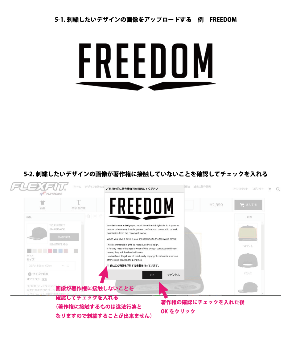 そちらのデザイン確認後ご了承頂いてから加工になりますので