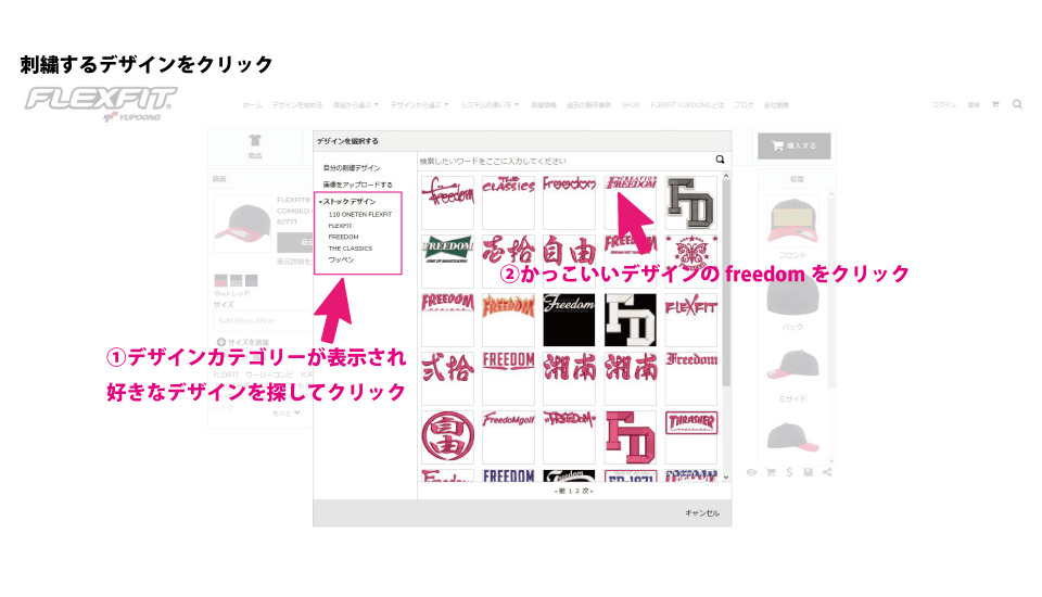 帽子の形、刺繍データーの大きさや、形により機械の構造上問題もあり、