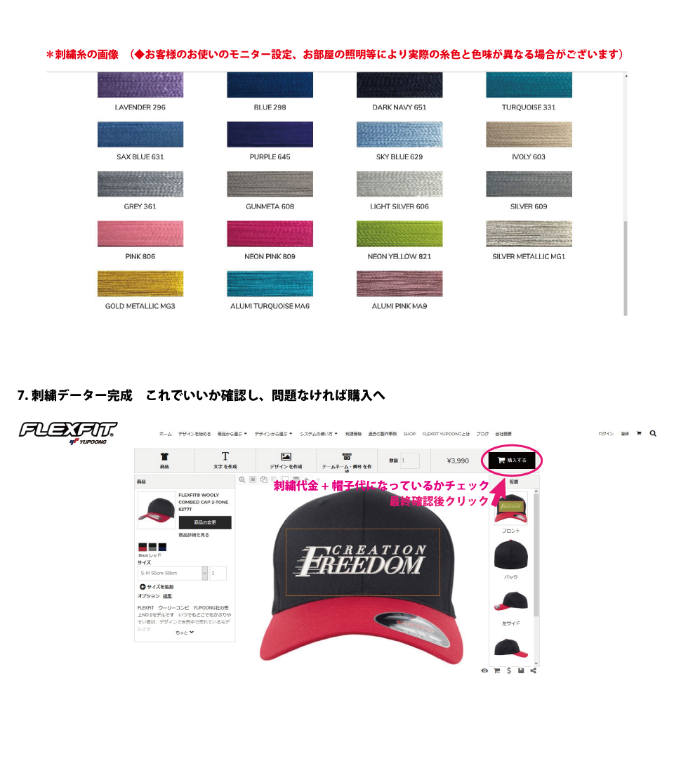 刺繍のデーター自体は平面ですが、実際の帽子は立体になりますので、